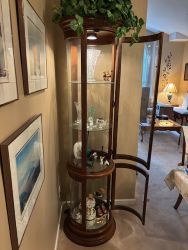 Showcase your treasured collectibles in timeless style with this lighted corner curio cabinet. Designed to fit snugly into a corner, this elegant glass-paneled display unit features interior lighting, multiple glass shelves, and a rich wood finish that brings warmth to any room.