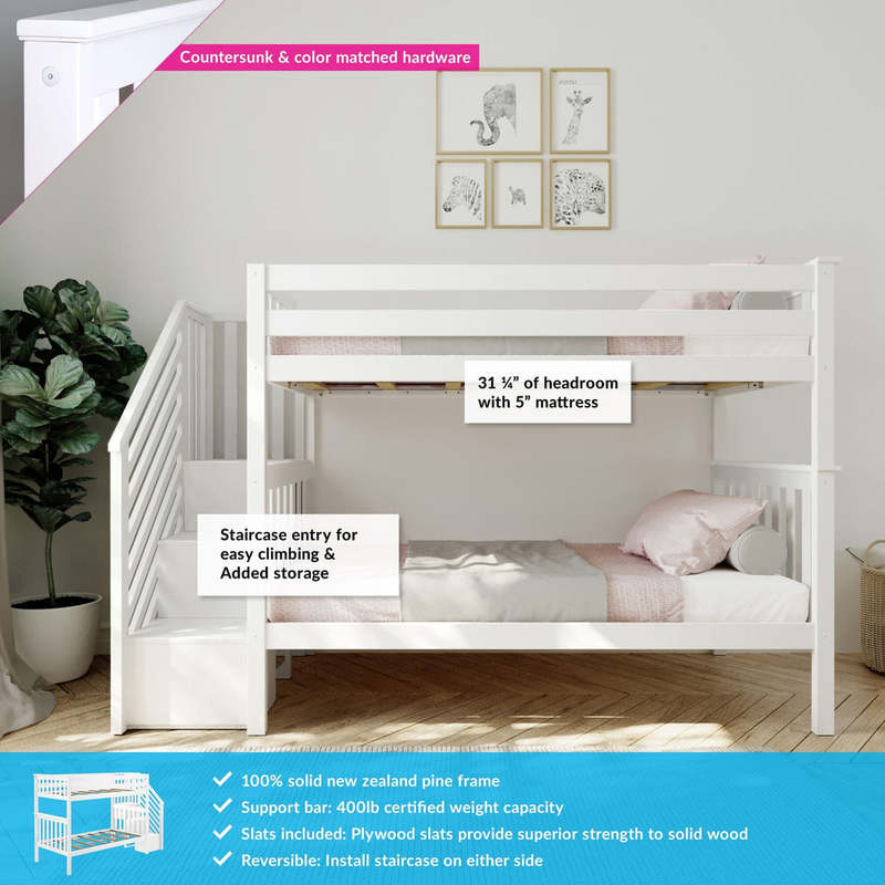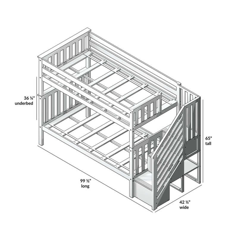 Twin Over Twin Bunk Bed with Stairs – Solid Wood Frame, Storage Staircase, Safe & Stylish Design for Shared Kids’ Rooms