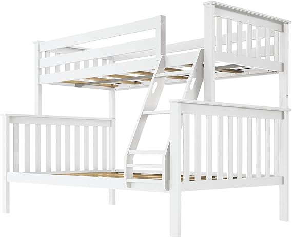 Twin Over Twin Bunk Bed – Solid Wood Frame in White Finish, Space-Saving Design with Guard Rails & Ladder