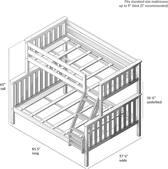 • Safety: Full-length guard rails on top bunk; supports up to 400 lbs per bunk