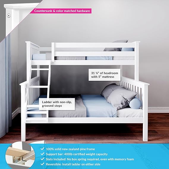 Twin Over Twin Bunk Bed – Solid Wood Frame in White Finish