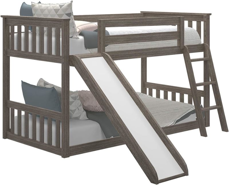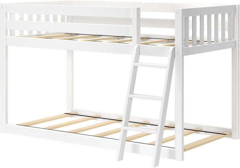 Twin Over Twin Low Bunk Bed with Slide, Ladder White Finish