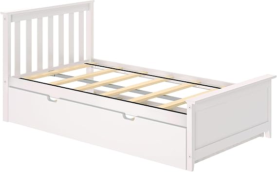 Twin-Size Solid Wood Bed with Pull-Out Trundle White Finish