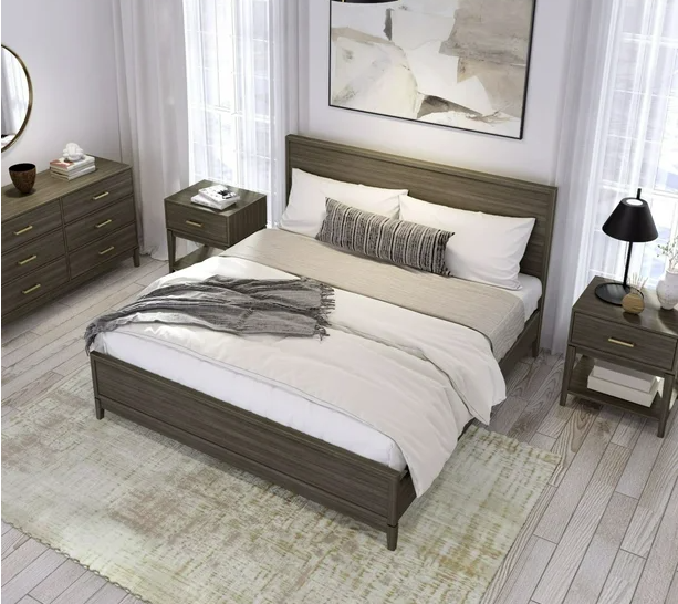 Full Size Solid Wood Platform Bed with Slatted Headboard