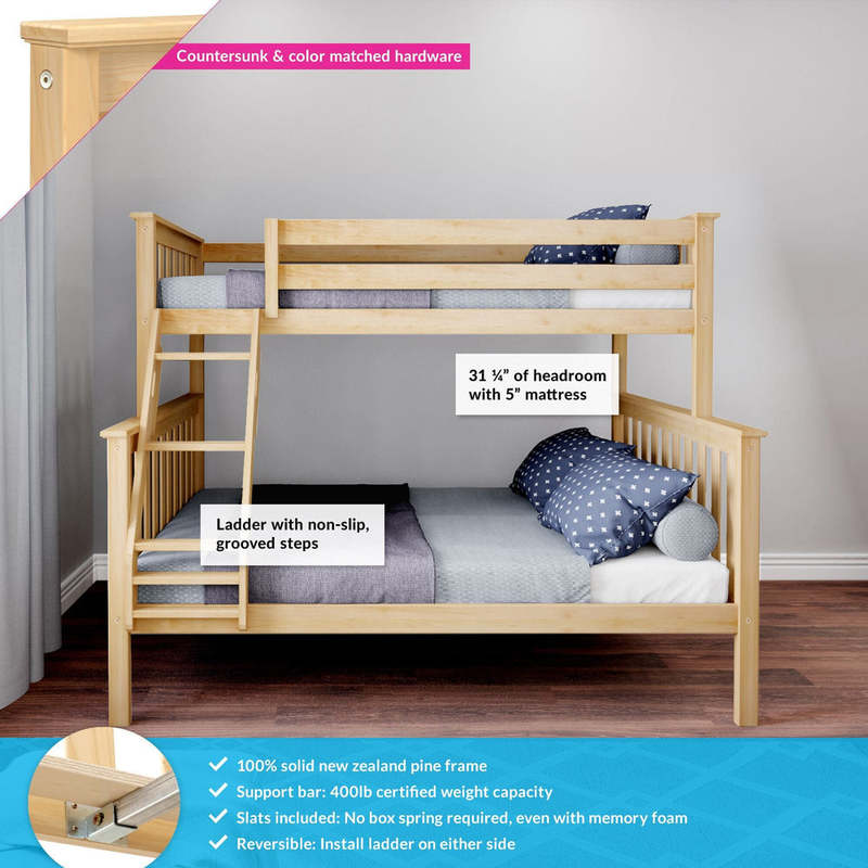 Twin Over Full Solid Wood Bunk Bed Non-Toxic Finish
