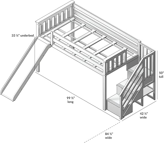 Low Twin Loft Bed with Slide & Play Curtain – Solid Wood